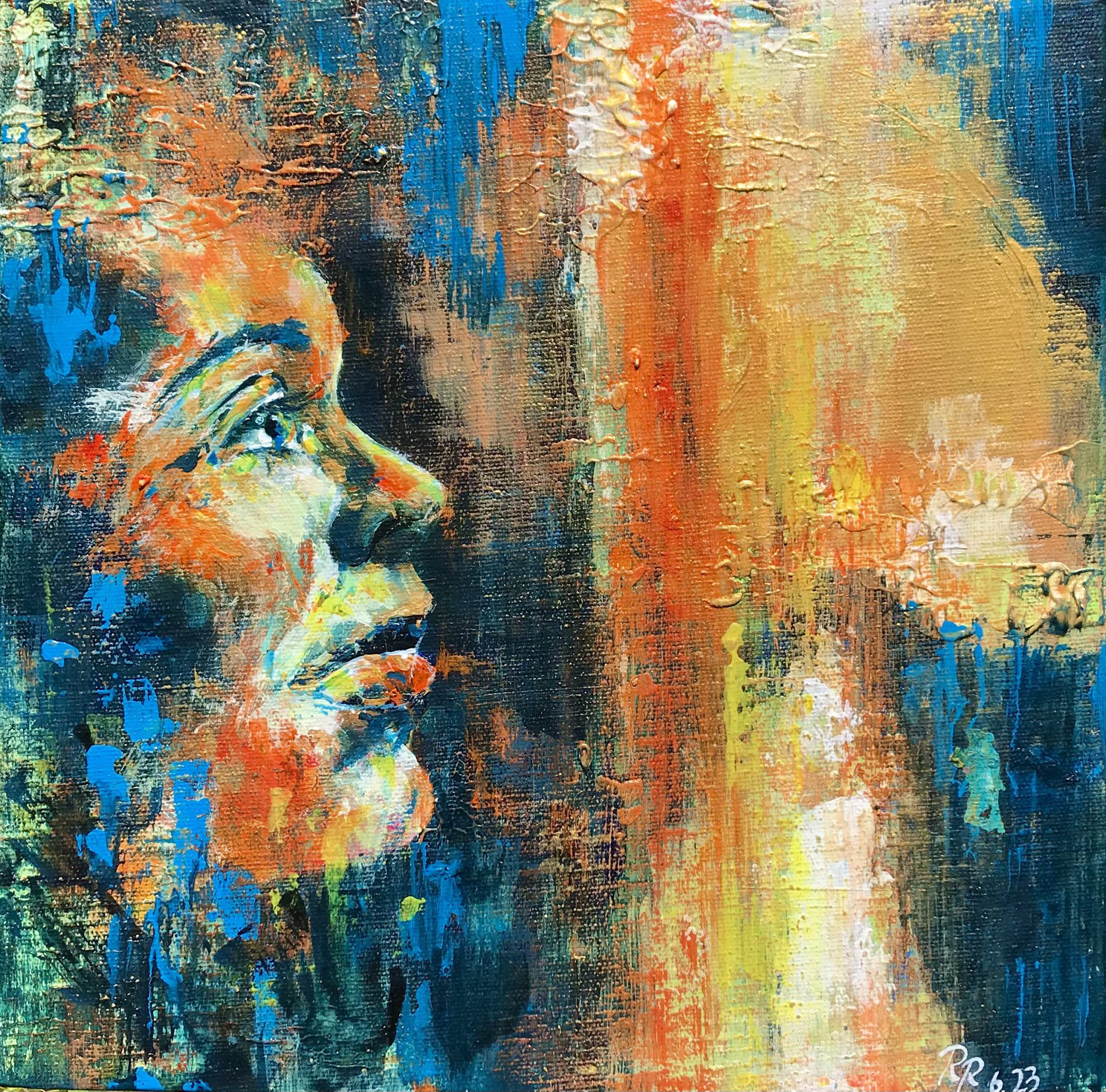 Blau und Orange umhüllen dich.