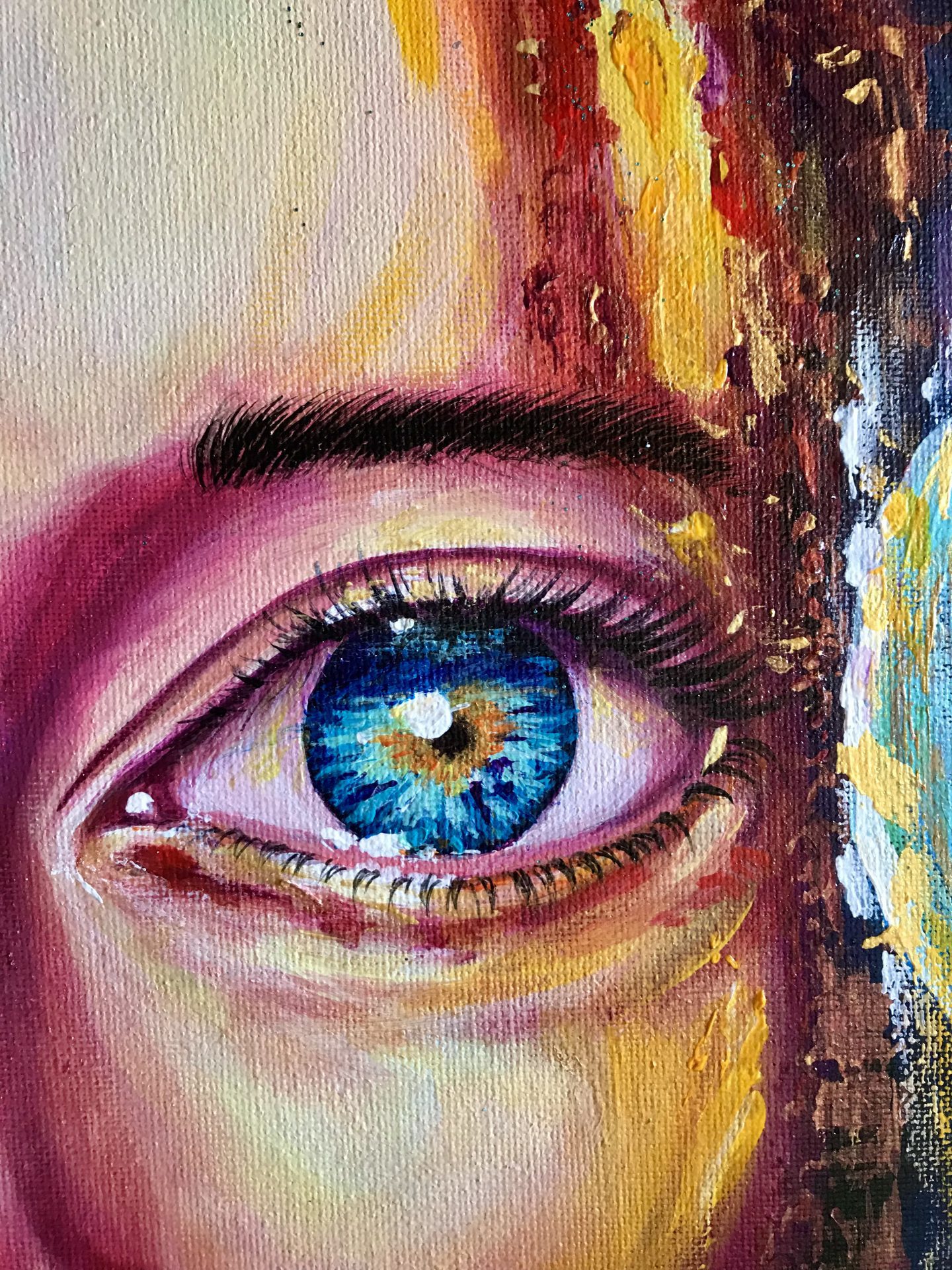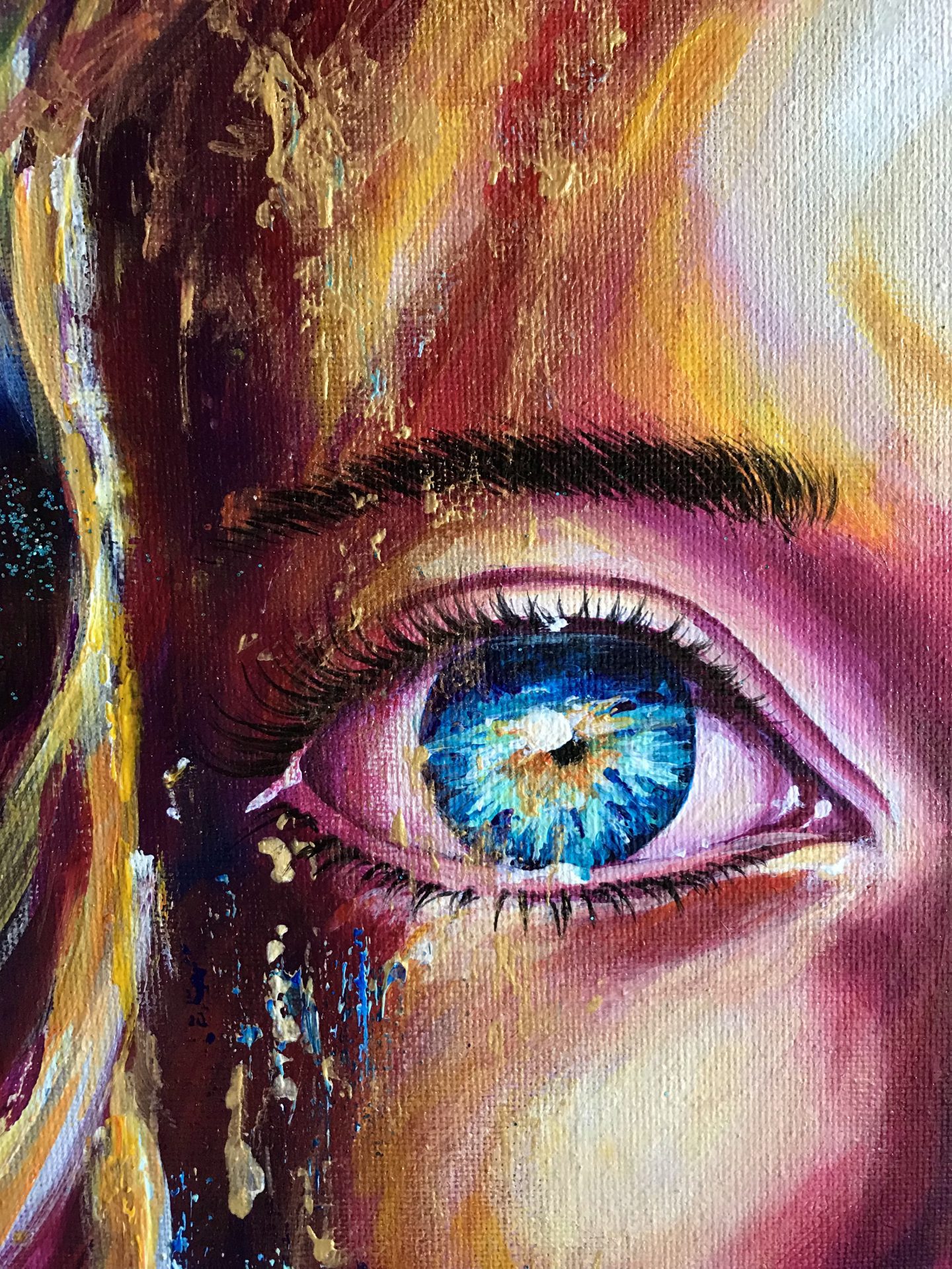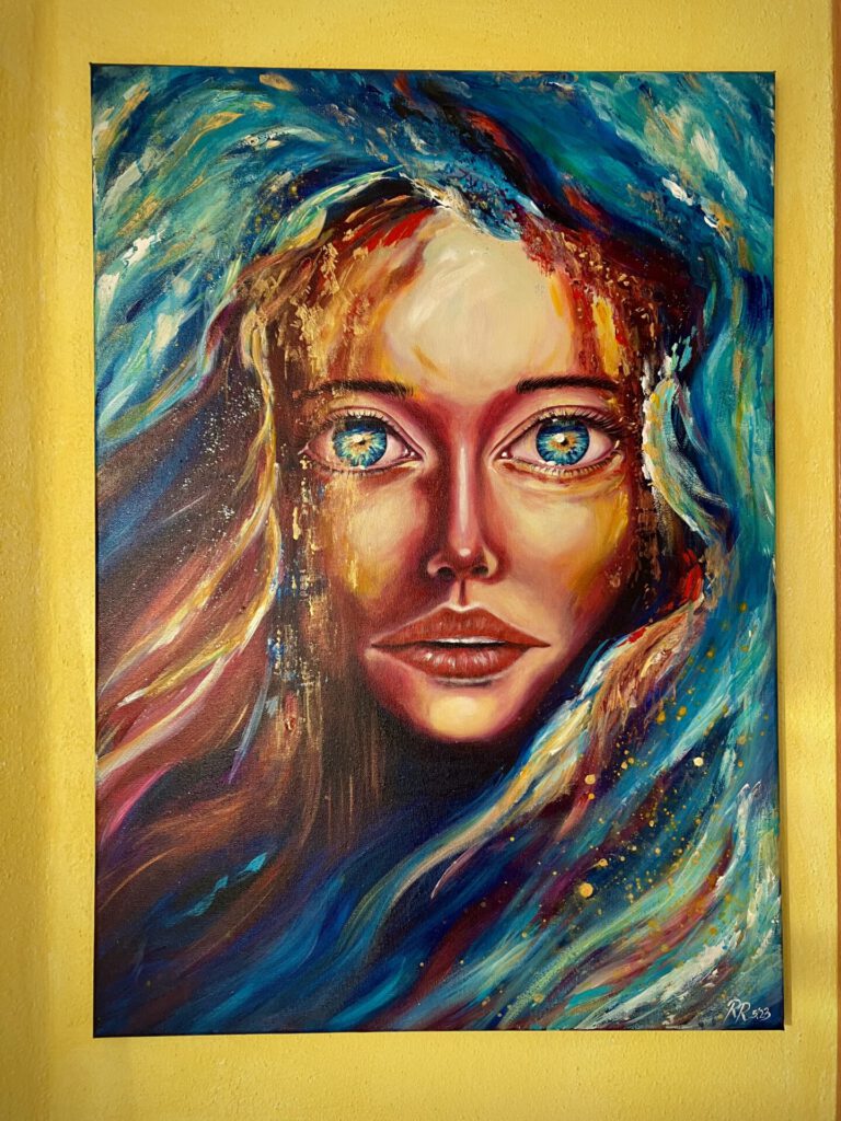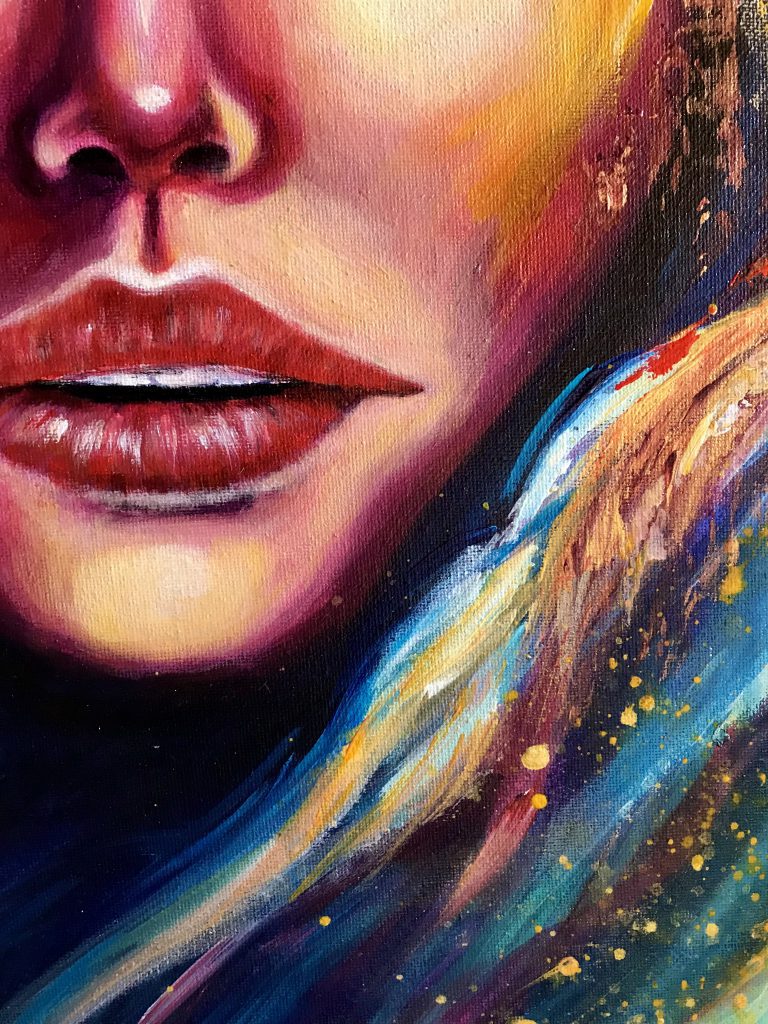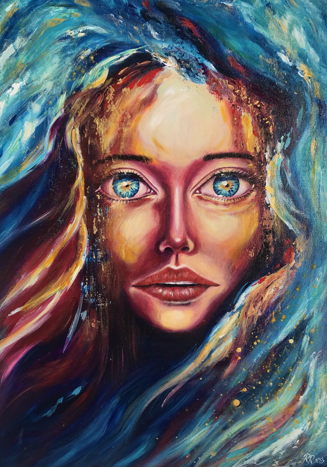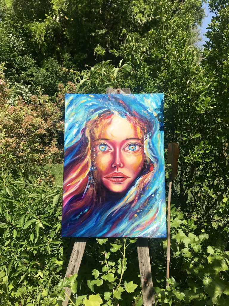 Ein Gesicht, geboren aus Licht, Farbe und Gefühl.